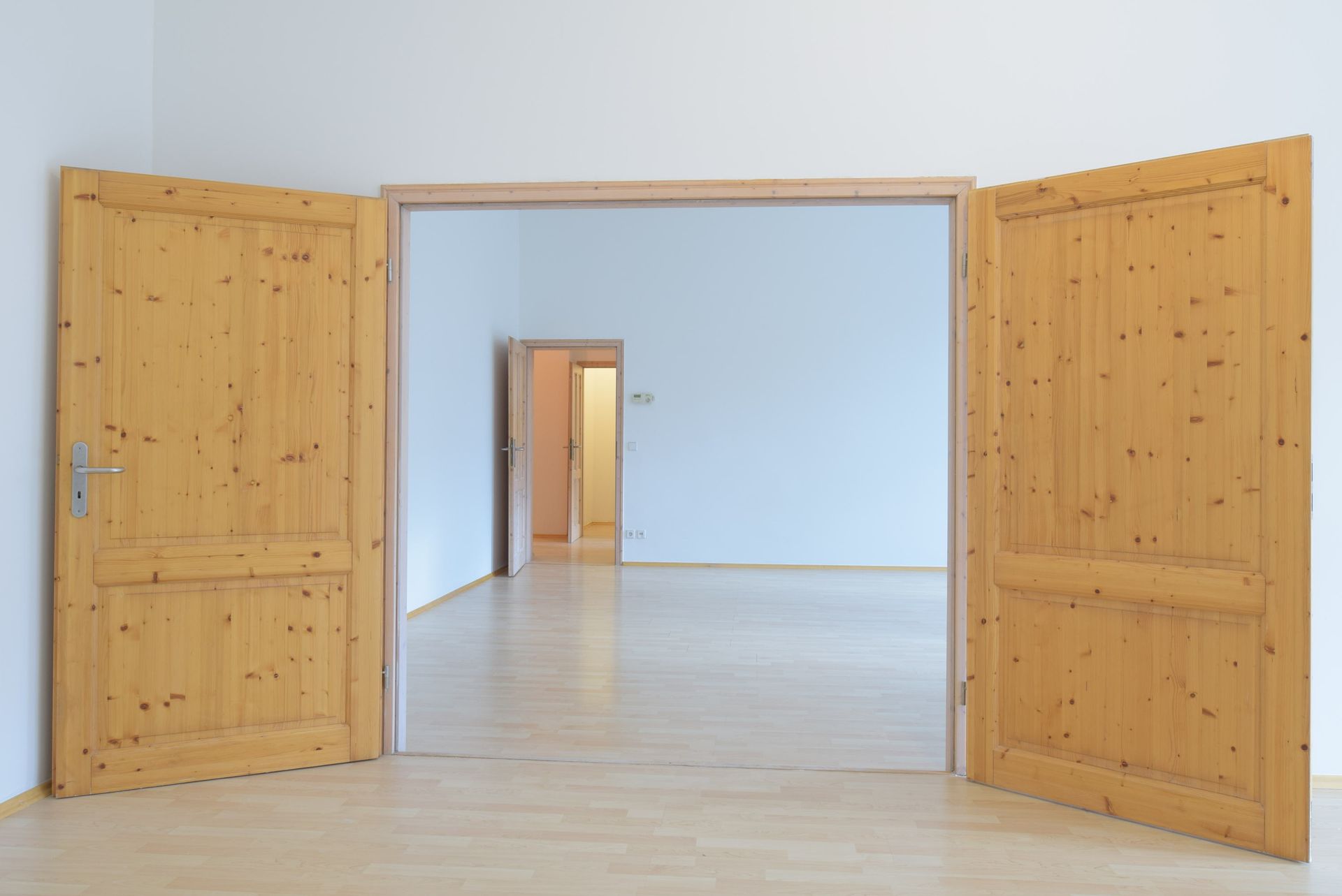 + Ästhetische neuere Holz-Türen und - Zargen (keine klassische Altbau-Türen) mit Edelstahl-Klinken. Sie haben z.T. Gebrauchsspuren durch Sonnen-Ausbleichungen.